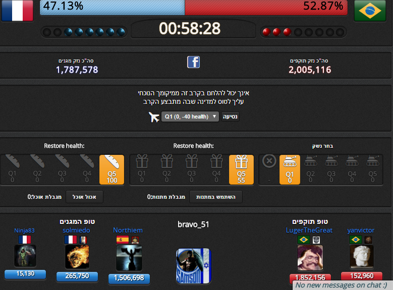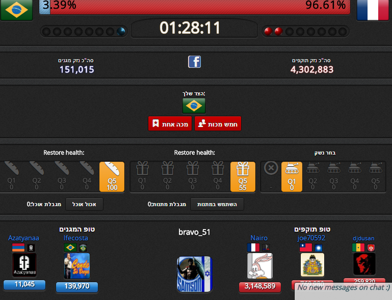 לדוגמה הקרב שמעליי צרפת נגד ברזיל הכי הגיוני מיצידי ללכת לתקוף עבור ברזיל כי אני יכול לראות שהדמג שלהם הכי נמוך ואין לי סיכוי להגיע למדליה אם אני ילחם למען הצרפתים..